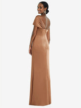 Accentuate your sleek style with the elegant twist cuff neckline featured on this formal one-shoulder dress. Beautiful lux charmeuse fabric flows like water through a princess silhouette and a soft trumpet skirt with a chic slit perfect for dancing the night away.