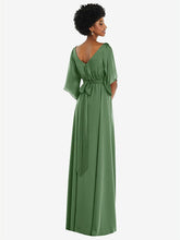 【STYLE: 3102】Asymmetric Bell Sleeve Wrap Maxi Dress with Front Slit【COLOR: Vineyard Green】