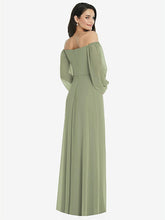 【STYLE: 3104】Off-the-Shoulder Puff Sleeve Maxi Dress with Front Slit【COLOR: Sage】