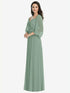 Choose an off-the-shoulder look or wear the soft bishop sleeves of this lux chiffon gown up for a more modest look. Beautiful in its every detail, this full-length formal dress boasts a shirred, modified circle skirt paired with a slight sweetheart neckline. Just right for a beautiful bridesmaid!