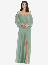 【STYLE: 3104】Off-the-Shoulder Puff Sleeve Maxi Dress with Front Slit【COLOR: Seagrass】