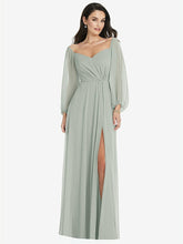 【STYLE: 3104】Off-the-Shoulder Puff Sleeve Maxi Dress with Front Slit【COLOR: Willow Green】