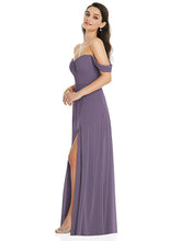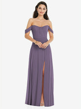 【STYLE: 3105】Off-the-Shoulder Draped Sleeve Maxi Dress with Front Slit【COLOR: Lavender】