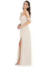 【STYLE: 3105】Off-the-Shoulder Draped Sleeve Maxi Dress with Front Slit【COLOR: Oat】