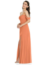 【STYLE: 3105】Off-the-Shoulder Draped Sleeve Maxi Dress with Front Slit【COLOR: Sweet Melon】