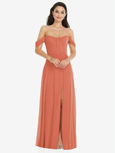 【STYLE: 3105】Off-the-Shoulder Draped Sleeve Maxi Dress with Front Slit【COLOR: Terracotta Copper】
