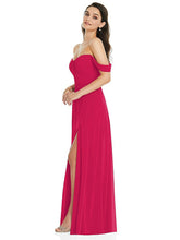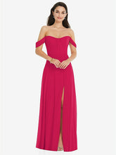 【STYLE: 3105】Off-the-Shoulder Draped Sleeve Maxi Dress with Front Slit【COLOR: Vivid Pink】