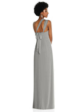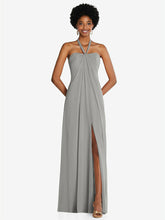 You'll want to strut down the runway in this sophisticated Grecian column dress in flowing lux chiffon. Convertible tie straps allow for a choice of a halter, one-shoulder, or strapless silhouette, perfect for a dress you'll want to wear every chance you get. Its flowing skirt is the ideal way to hide a baby bump, and the slit makes it easy to move and dance.