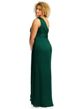 【STYLE: 3111】One-Shoulder Draped Twist Empire Waist Trumpet Gown【COLOR: Hunter Green】