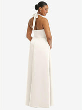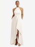 【STYLE: 3113】High-Neck Tie-Back Halter Cascading High Low Maxi Dress【COLOR: Ivory】
