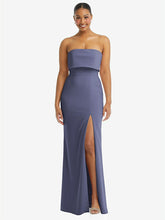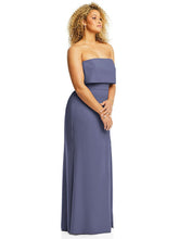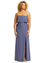【STYLE: 3115】Strapless Overlay Bodice Crepe Maxi Dress with Front Slit【COLOR: French Blue】
