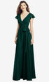 【STYLE: 6817】Flutter Sleeve Faux Wrap Chiffon Dress【COLOR: Evergreen】