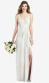 【STYLE: 6820】Spaghetti Strap Draped Skirt Gown with Front Slit【COLOR: Spring Fling】