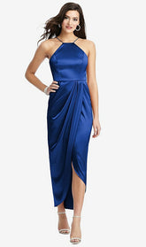 【STYLE: 6829】Halter Midi Dress with Draped Tulip Skirt【COLOR: Sapphire】