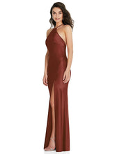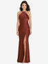 【STYLE: 6853】Halter Convertible Strap Bias Slip Dress With Front Slit【COLOR: Auburn Moon】