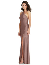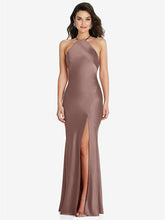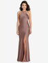 【STYLE: 6853】Halter Convertible Strap Bias Slip Dress With Front Slit【COLOR: Sienna】