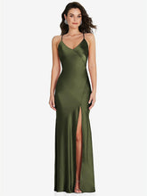 【STYLE: 6854】V-Neck Convertible Strap Bias Slip Dress with Front Slit【COLOR: Olive Green】