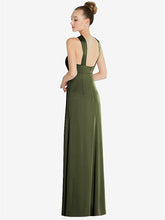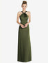 【STYLE: 6855】Draped Twist Halter Low-Back Satin Empire Dress【COLOR: Olive Green】