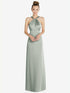 【STYLE: 6855】Draped Twist Halter Low-Back Satin Empire Dress【COLOR: Willow Green】