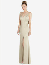 Twirl across the dance floor in style with this lux charmeuse V-neck gown. Princess seams create definition that's augmented with a draped cowl on a low back that adds a hint of sensuality. A lovely trumpet skirt completes the look with classic sophistication.