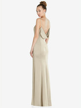 【STYLE: 6856】Draped Cowl-Back Princess Line Dress with Front Slit【COLOR: Champagne】