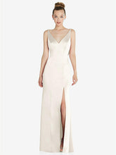 Twirl across the dance floor in style with this lux charmeuse V-neck gown. Princess seams create definition that's augmented with a draped cowl on a low back that adds a hint of sensuality. A lovely trumpet skirt completes the look with classic sophistication.
