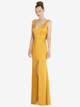 Twirl across the dance floor in style with this lux charmeuse V-neck gown. Princess seams create definition that's augmented with a draped cowl on a low back that adds a hint of sensuality. A lovely trumpet skirt completes the look with classic sophistication.