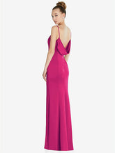 【STYLE: 6856】Draped Cowl-Back Princess Line Dress with Front Slit【COLOR: Think Pink】