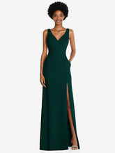 This crepe V-neck dress is an elegant, lovely choice from an early afternoon wedding ceremony to a late-night reception. Featuring an inset midriff that creates structure, paired with a low, square back, the gown boasts a soft A-line skirt with a slit for free and easy dancing and dining. It's even got pockets!