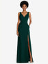 【STYLE: 6857】Square Low-Back A-Line Dress with Front Slit and Pockets【COLOR: Evergreen】