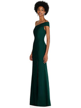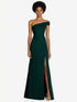 【STYLE: 6858】Asymmetrical Off-the-Shoulder Cuff Trumpet Gown With Front Slit【COLOR: Evergreen】