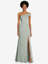 【STYLE: 6858】Asymmetrical Off-the-Shoulder Cuff Trumpet Gown With Front Slit【COLOR: Willow Green】