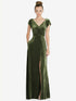 【STYLE: 6862】Cap Sleeve Faux Wrap Velvet Maxi Dress with Pockets【COLOR: Olive Green】