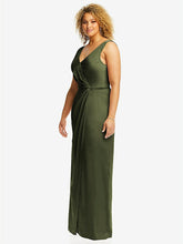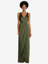 【STYLE: 6864】Faux Wrap Whisper Satin Maxi Dress with Draped Tulip Skirt【COLOR: Olive Green】