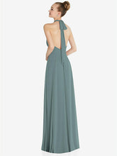 【STYLE: 6865】Halter Backless Maxi Dress with Crystal Button Ruffle Placket【COLOR: Icelandic】