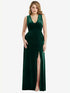 Step out in this formal full-length dress, made from a soft lux velvet fabric that puts out super romantic vibes. A deep V-neck reflects the side slit of the flowy circle skirt, complete with convenient pockets to carry bridesmaid essentials. A full closed-back provides bra-friendly coverage.