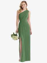 【STYLE: 8156】One-Shoulder Draped Bodice Column Gown【COLOR: Vineyard Green】