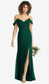【STYLE: 8193】Off-the-Shoulder Criss Cross Bodice Trumpet Gown【COLOR: Hunter Green】