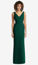 Capture a look of understated sophistication with this full-length V-neck gown in lux chiffon. Princess seams gently contour the lightly fitted V-neck bodice, while a modified trumpet skirt continues the slender profile. A plunging square back is cinched with a bow featuring long chiffon 'tails' that dance with each step in this sweet bridesmaid dress.
