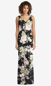 【STYLE: 8194】Sleeveless Tie Back Chiffon Trumpet Gown【COLOR: Noir Garden】