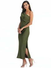 【STYLE: 8203】Draped One-Shoulder Convertible Midi Slip Dress【COLOR: Olive Green】