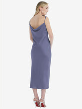 【STYLE: 8204】Asymmetrical One-Shoulder Cowl Midi Slip Dress【COLOR: French Blue】