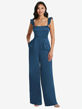 【STYLE: 8206】Ruffled Sleeve Tie-Back Jumpsuit with Pockets【COLOR: Dusk Blue】