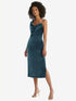 Step out with serious style in this asymmetrical one-shoulder bias slip dress. This stunning, lux velvet midi dress is beautifully designed with a cowl back and side slit. Subtle draping rounds out the aesthetic of this gorgeous, figure-flattering dress.