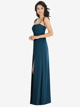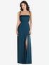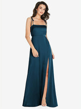 【STYLE: 8214】Skinny Tie-Shoulder Satin Maxi Dress with Front Slit【COLOR: Atlantic Blue】
