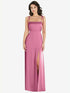 【STYLE: 8214】Skinny Tie-Shoulder Satin Maxi Dress with Front Slit【COLOR: Orchid Pink】