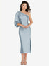 【STYLE: 8215】One-Shoulder Puff Sleeve Midi Bias Dress with Side Slit【COLOR: Mist】