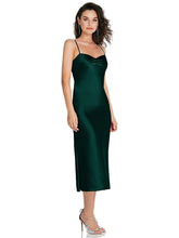 【STYLE: 8220】Open-Back Convertible Strap Midi Bias Slip Dress【COLOR: Evergreen】
