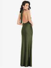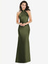 【STYLE: 8223】Scarf Tie High-Neck Halter Maxi Slip Dress【COLOR: Olive Green】