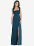 【STYLE: 8224】Flat Tie-Shoulder Empire Waist Maxi Dress with Front Slit【COLOR: Atlantic Blue】
